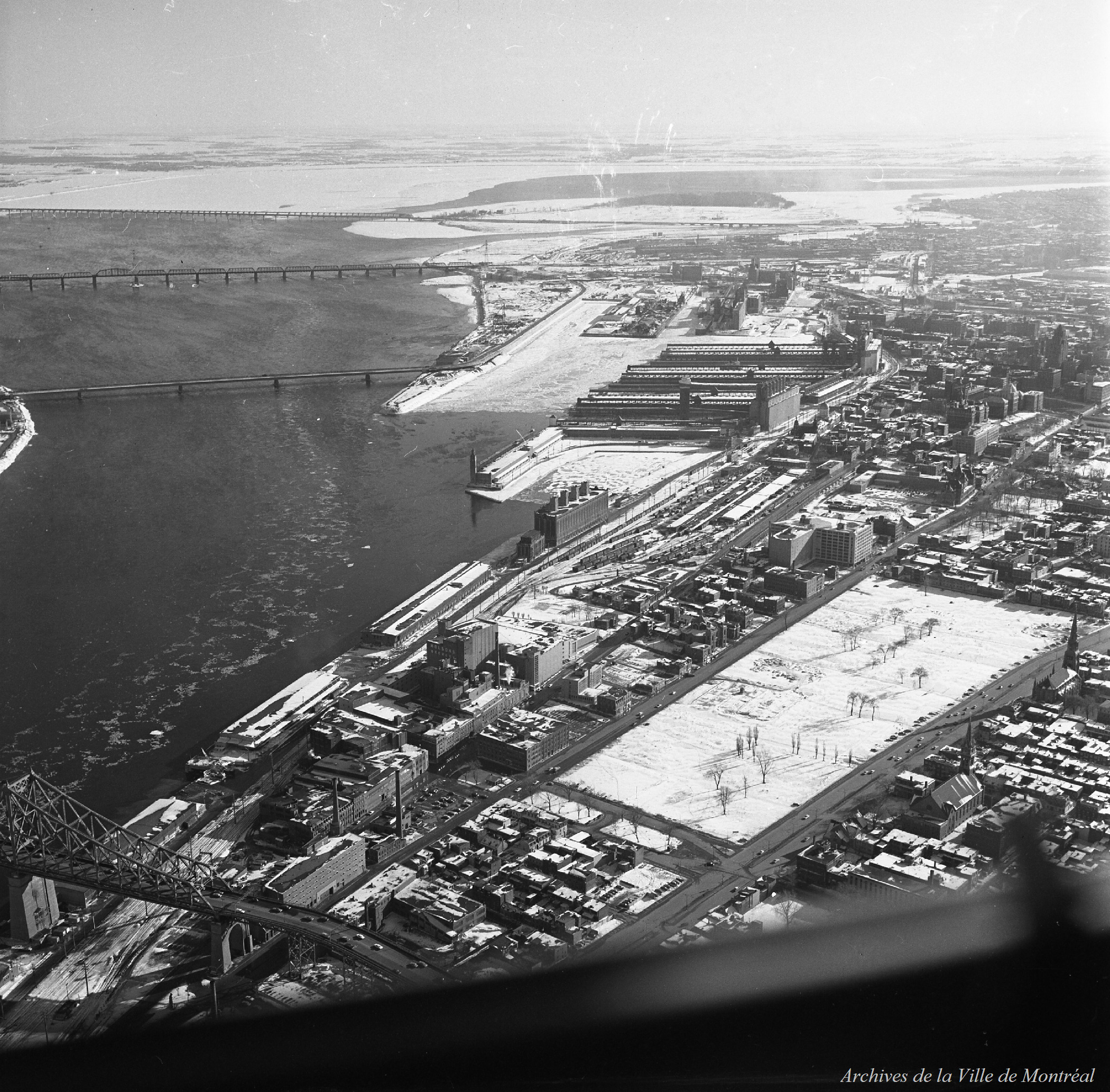 le reportage photographique comprend les lieux et bâtiments suivants : Futur site de la Maison de Radio-Canada (image 1) Pont Jacques-Cartier (2-4) Ile Sainte-Hélène, île Notre-Dame (5-6) Centre-ville (7-11) Canal Lachine (12-14) Cour de triage Glen, parc Oxford (15-18) Oratoire Saint-Joseph (19-21) Université de Montréal (22-23) Cour de triage Glen, falaise Saint-Jacques en hiver (24-28) Rues Monkland, Notre-Dame-de-Grâce, Sherbrooke (29-31) Centre-ville vers l'est (32-34) Parc Benny (35) Falaise Saint-Jacques, place Turcot (36-37) Rues Monkland, Notre-Dame-de-Grâce, Sherbrooke, Notre-Dame (38) Pacr Benny (39) Centre-ville vers l'est (40-42) Île Saint-Hélème, île Notre-Dame, Longueuil (43) Appartements Sainte-Catherine (44) Centre-ville (45) Pont Victoria, rive-sud (47) Pont Jacques-Cartier, échangeur Taschereau (48) Centre-ville vers l'est (49-50).