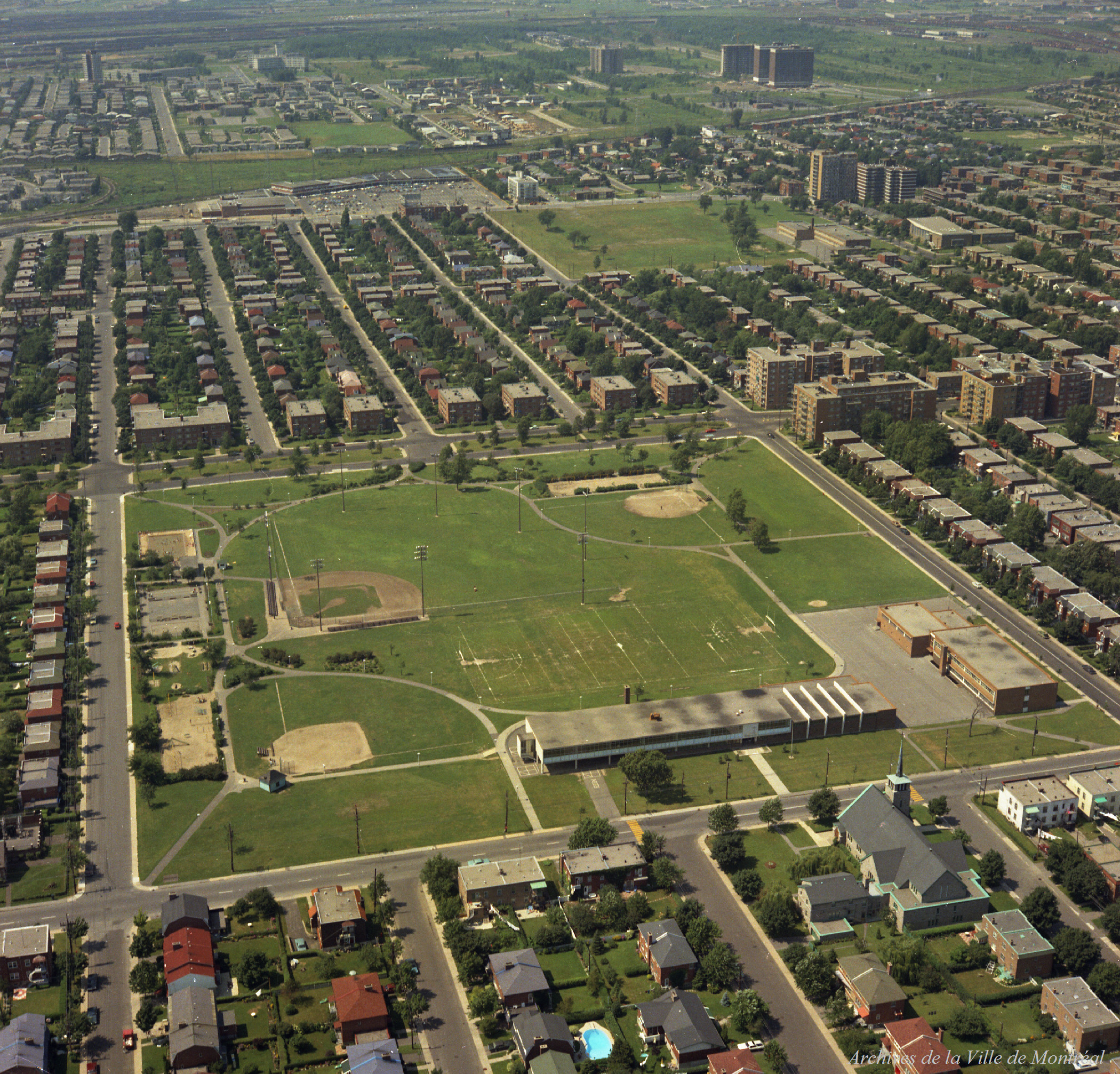 Pataugeoire, terrain de baseball, terrain de football au parc Loyola (images 1-3).