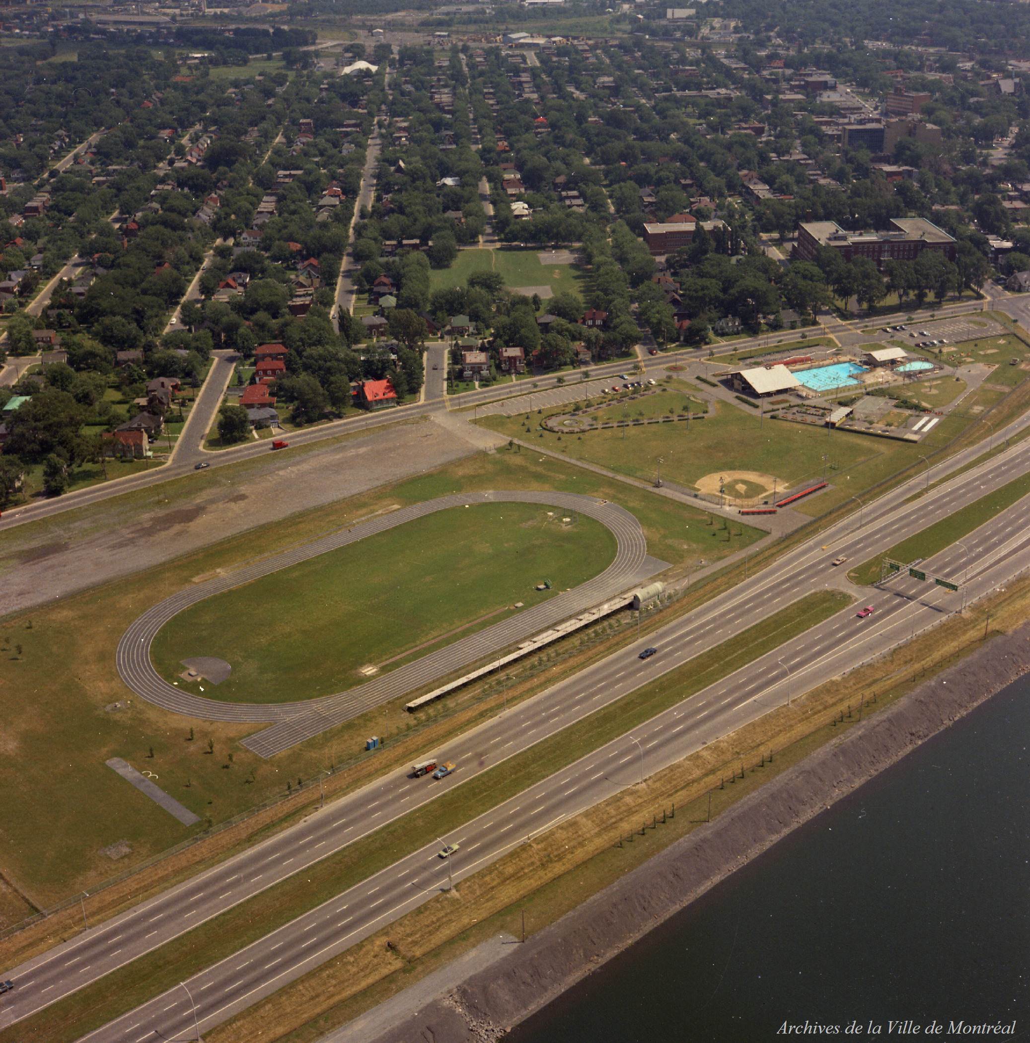 Ville Saint-Lambert - parc de la Voie maritime, terrain de football et poste d'athlétisme / Louis-Philippe Meunier . - 31 juillet 1969 (1969) | MTL Archives