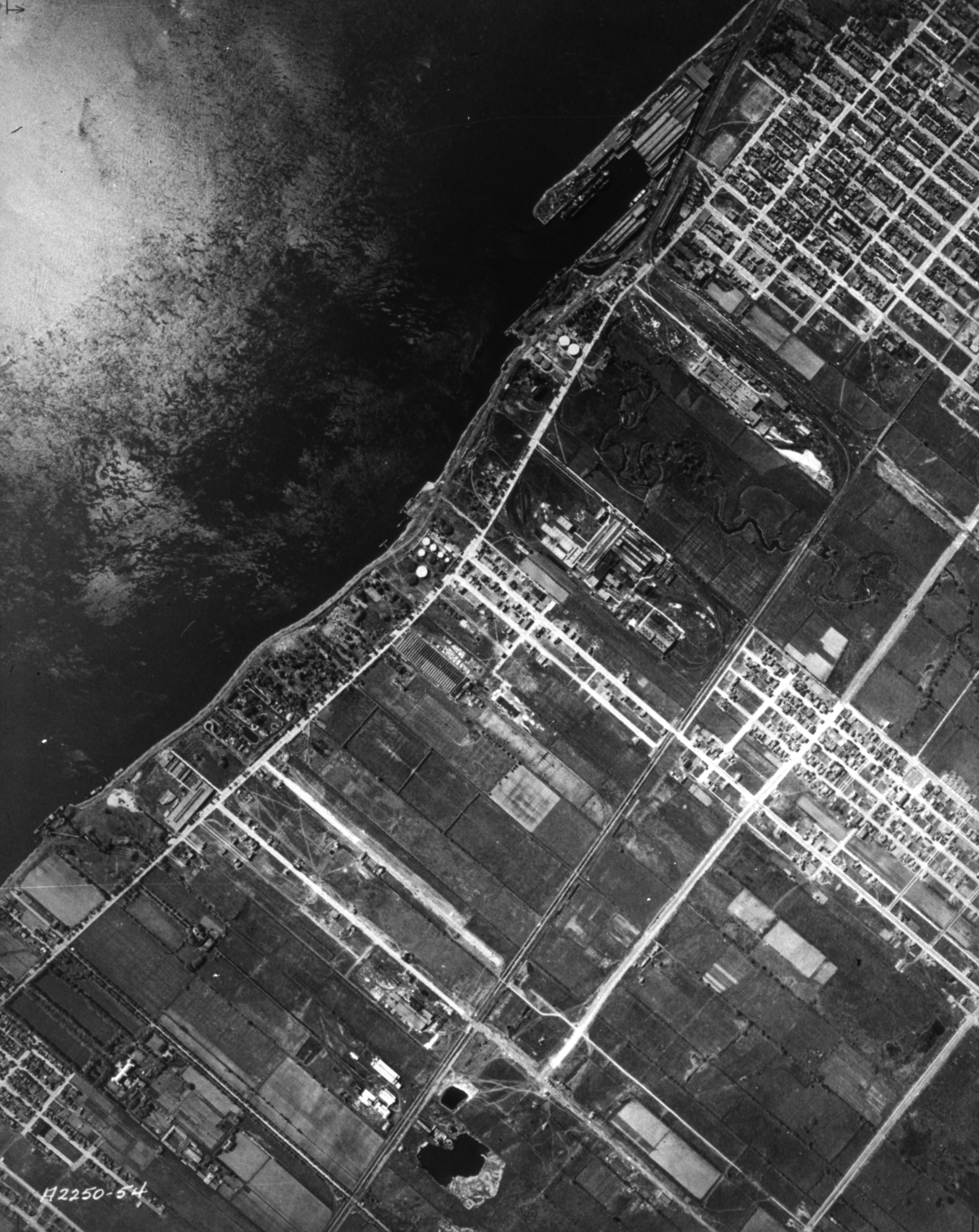 Vue aérienne verticale du secteur du port de Montréal. (1925-1935) | MTL Archives