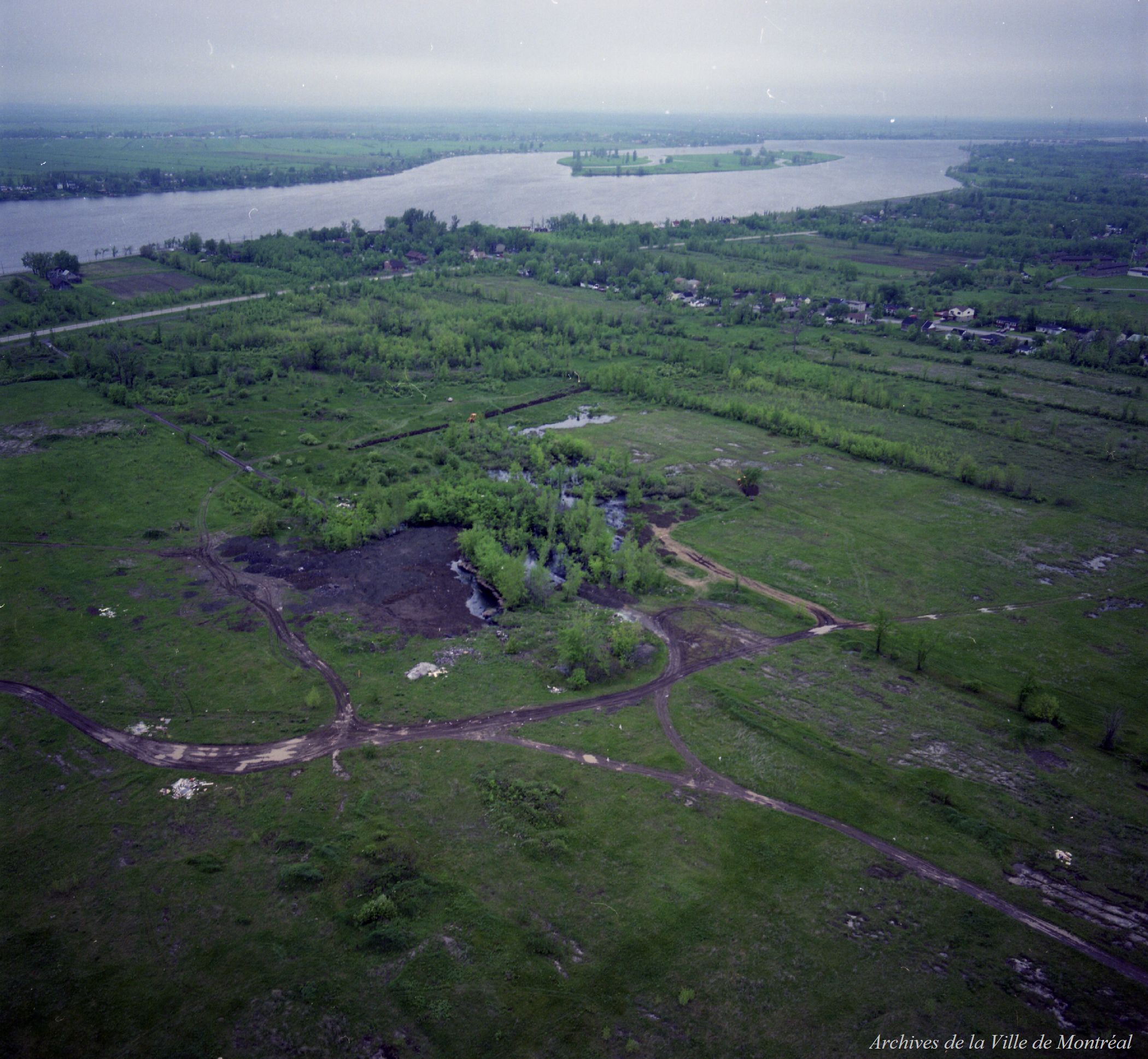 Terrain inondé d'huile à Rivière-des-Prairies / Martel . - 23 mai 1986 (1986) | MTL Archives