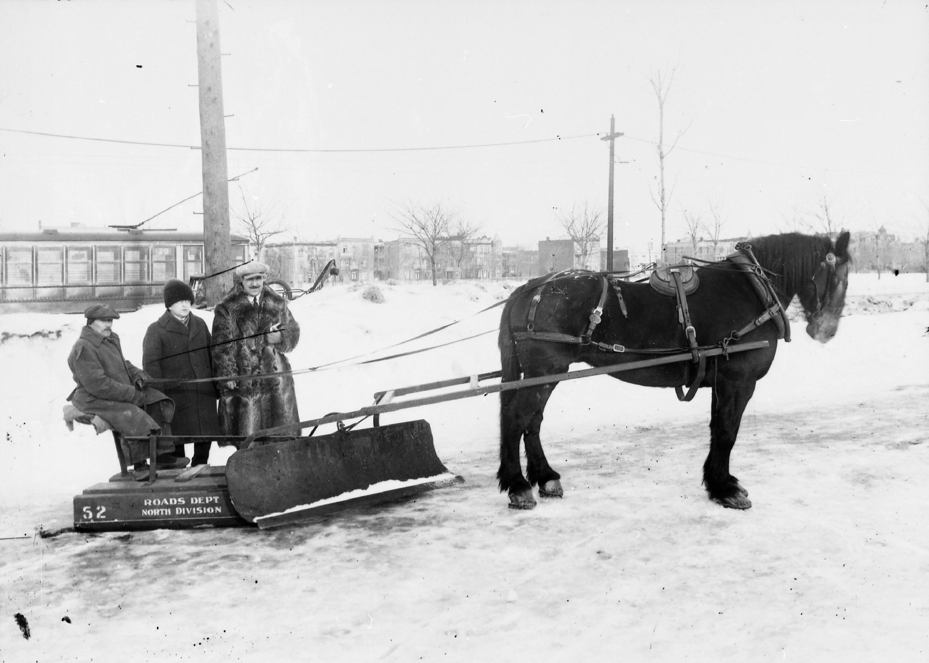 Chasse-neige du Département de la Voirie (Division Nord) tiré par un cheval (1930s) | MTL Archives